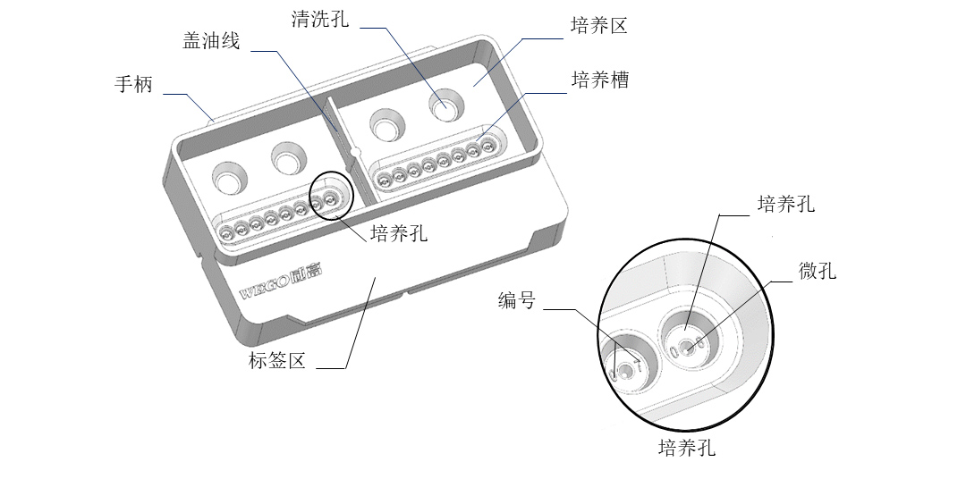 ③培養(yǎng)微孔旁具有數(shù)字標(biāo)識(shí),在顯微鏡下可清晰辨別孔號(hào),無(wú)需肉眼觀察,交互體驗(yàn)感更佳;